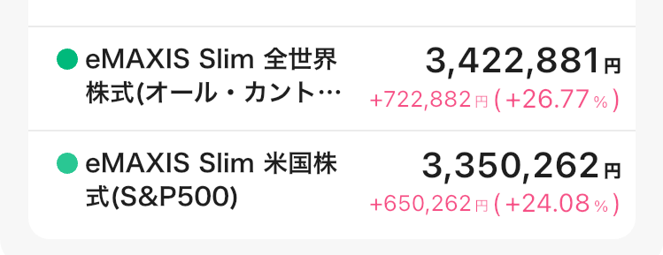 オルカン(全世界株式)とS&P500に毎月15万円ずつ積立投資を続けています。