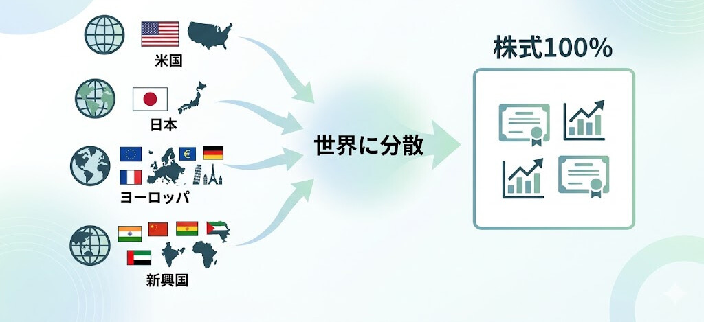 **「世界に分散=安全」ではなく、「世界の株式に集中している状態」**とも言えます。