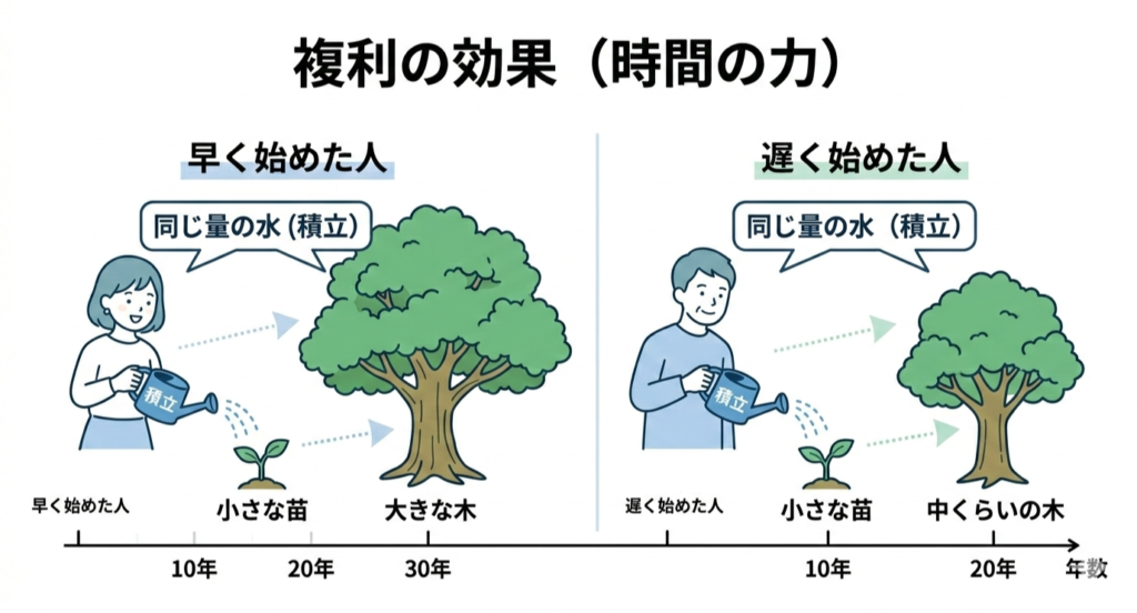 投資は早いほど有利と言われますが、最も大切なのは「始めること」と「続けること」です。