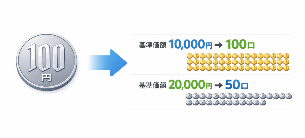 ・100円から買えるのは、金額に応じて口数が割り当てられるから