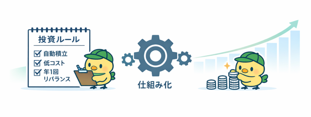 大切なのは、最初にシンプルで合理的な投資の仕組みを作ることです。